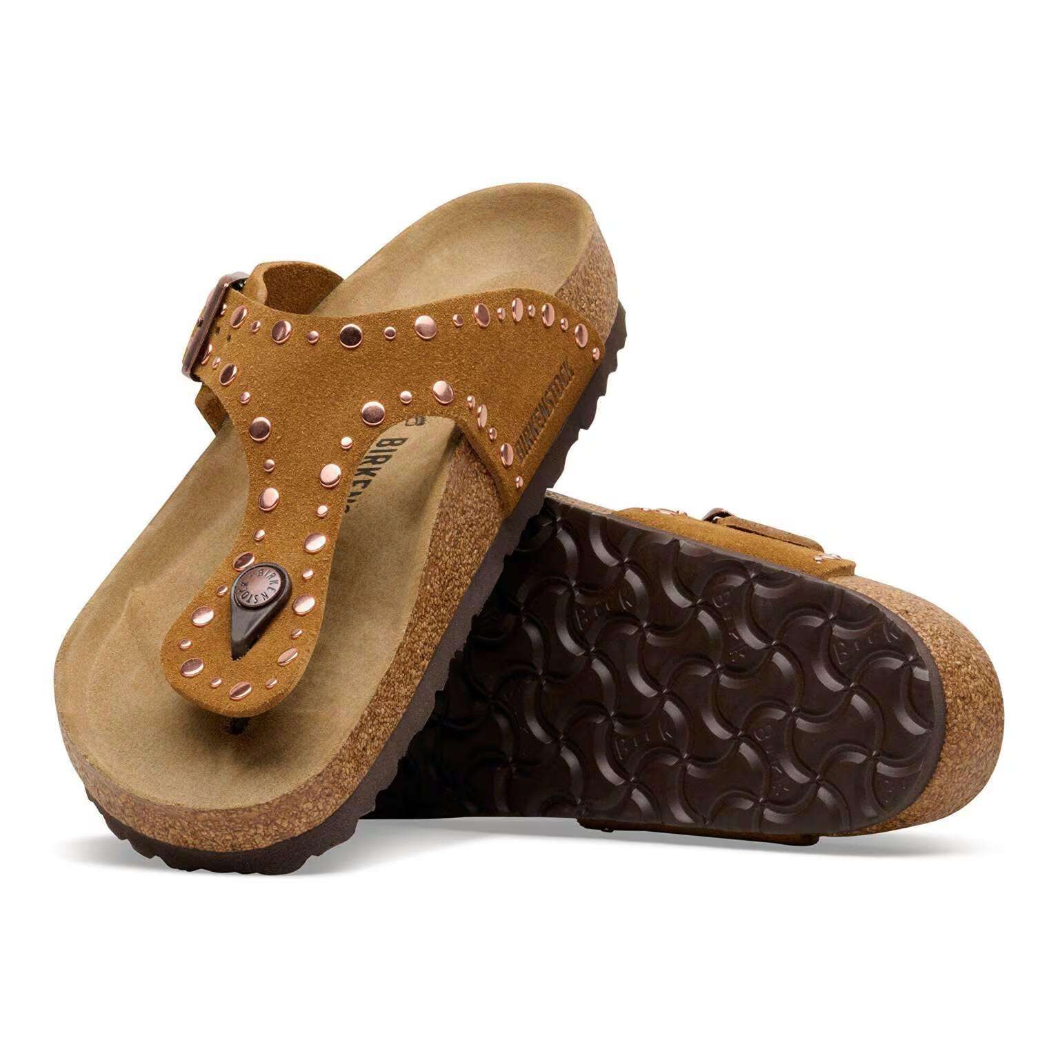 birkenstock sandalo infradito donna gizeh rivet border mink con borchie piatte 1031649
