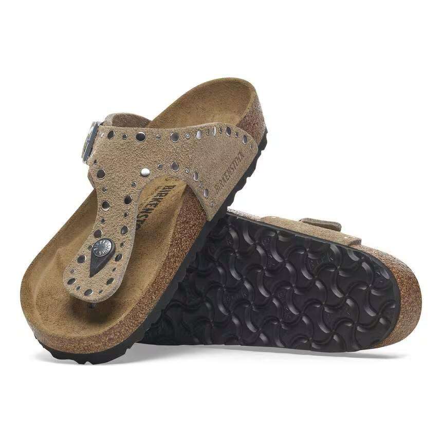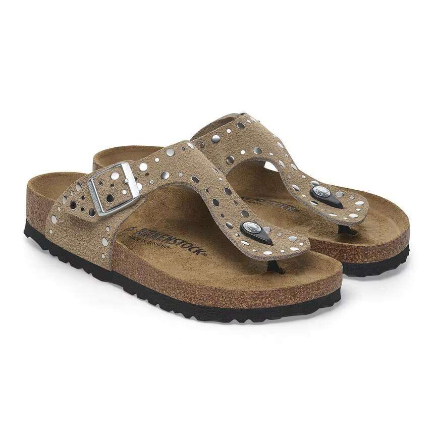 birkenstock sandalo infradito donna gizeh rivet border taupe con borchie piatte 1029388