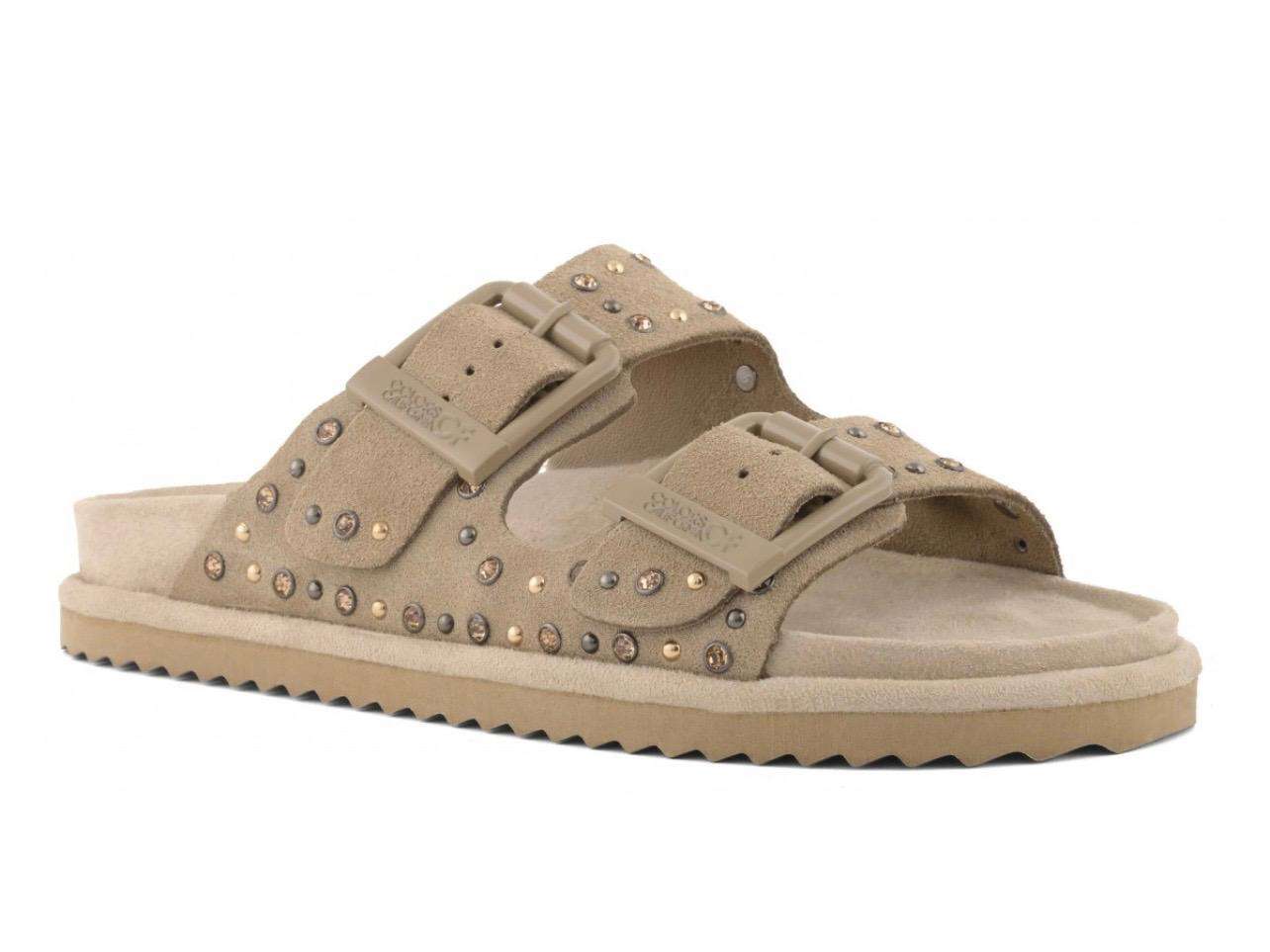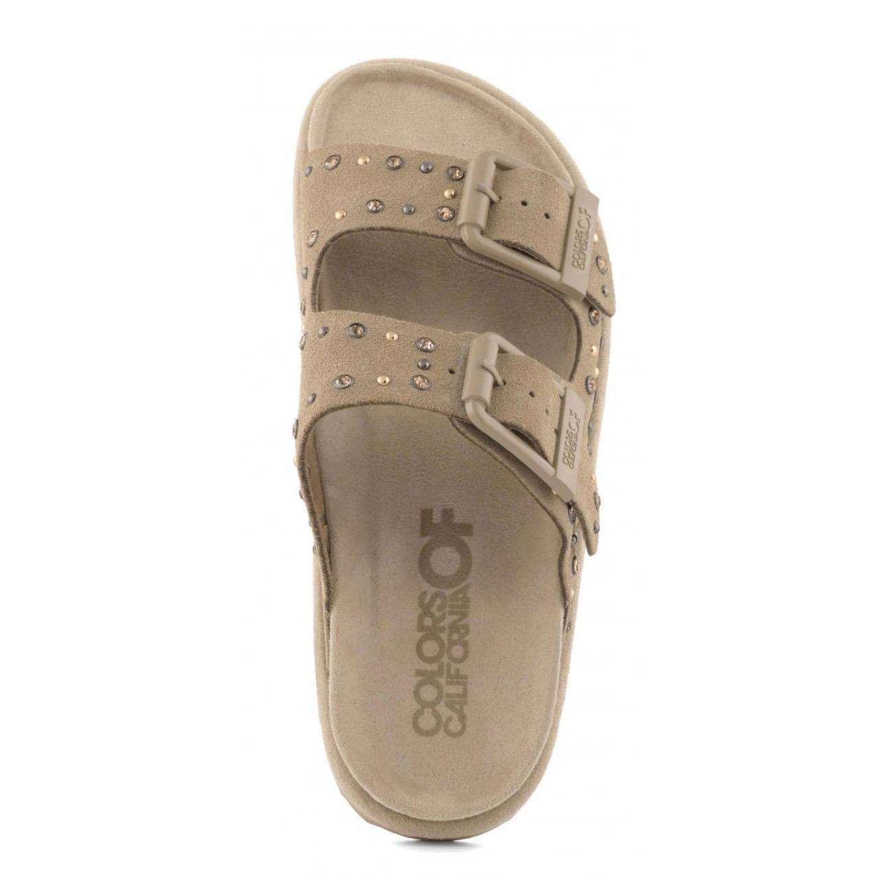 colors of california sandalo donna slofiw in pelle scamosciata e strass mud two buckle sandal with studs hc.biow05n