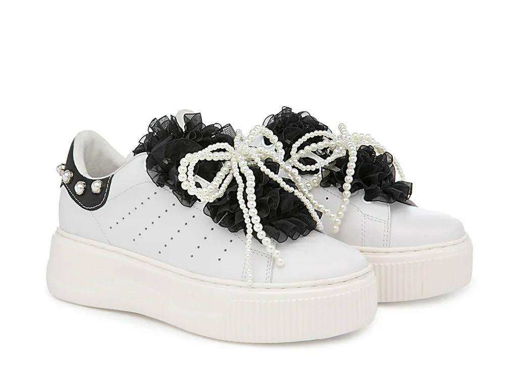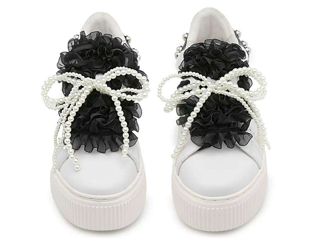 cult sneakers donna white black con rouches clw 463601 perry 4636 low w