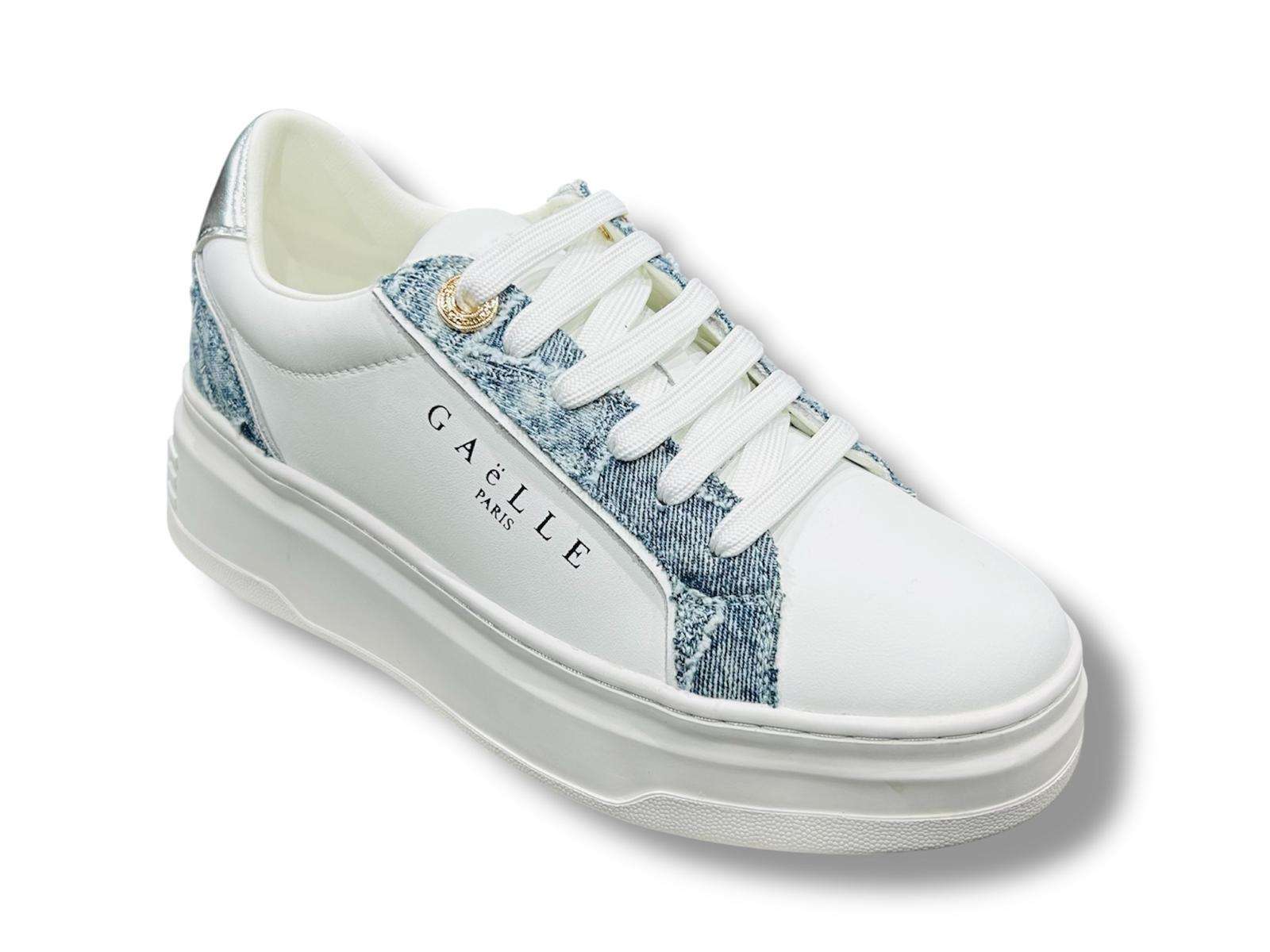 gaelle sneakers donna in action leather bianco con inserti in jeans gacaw01622
