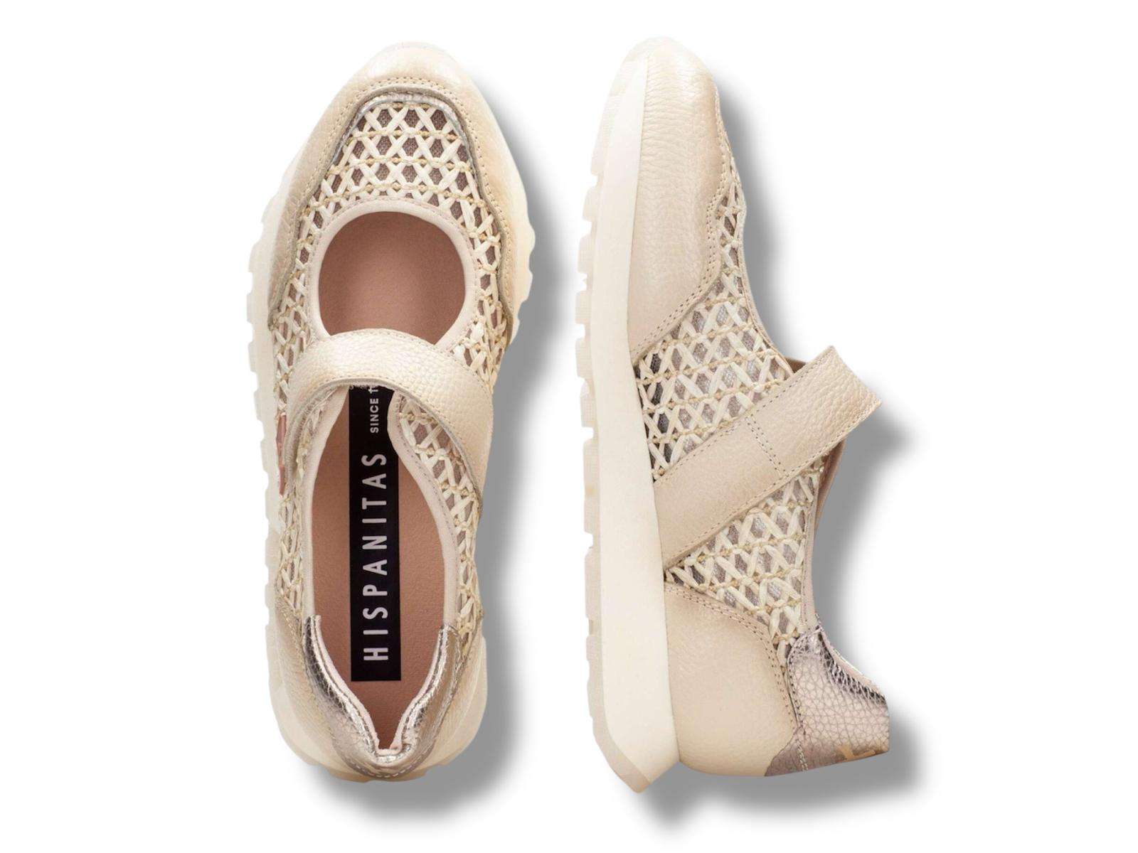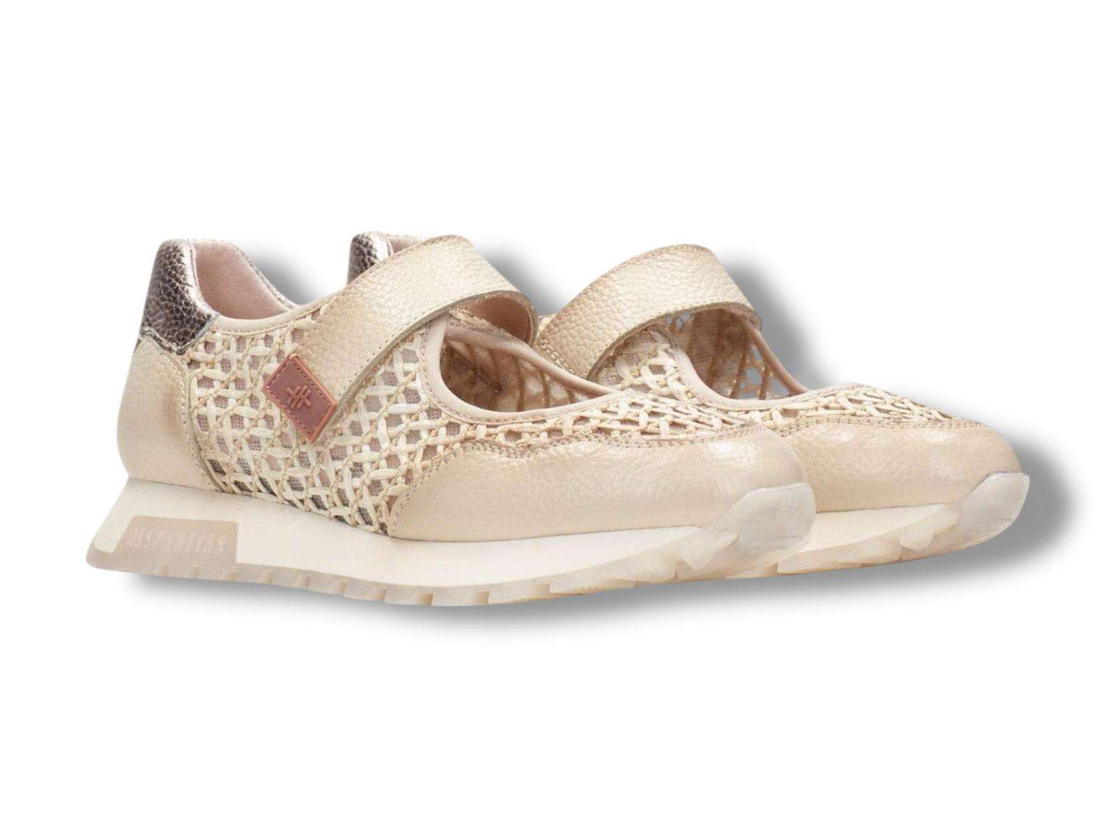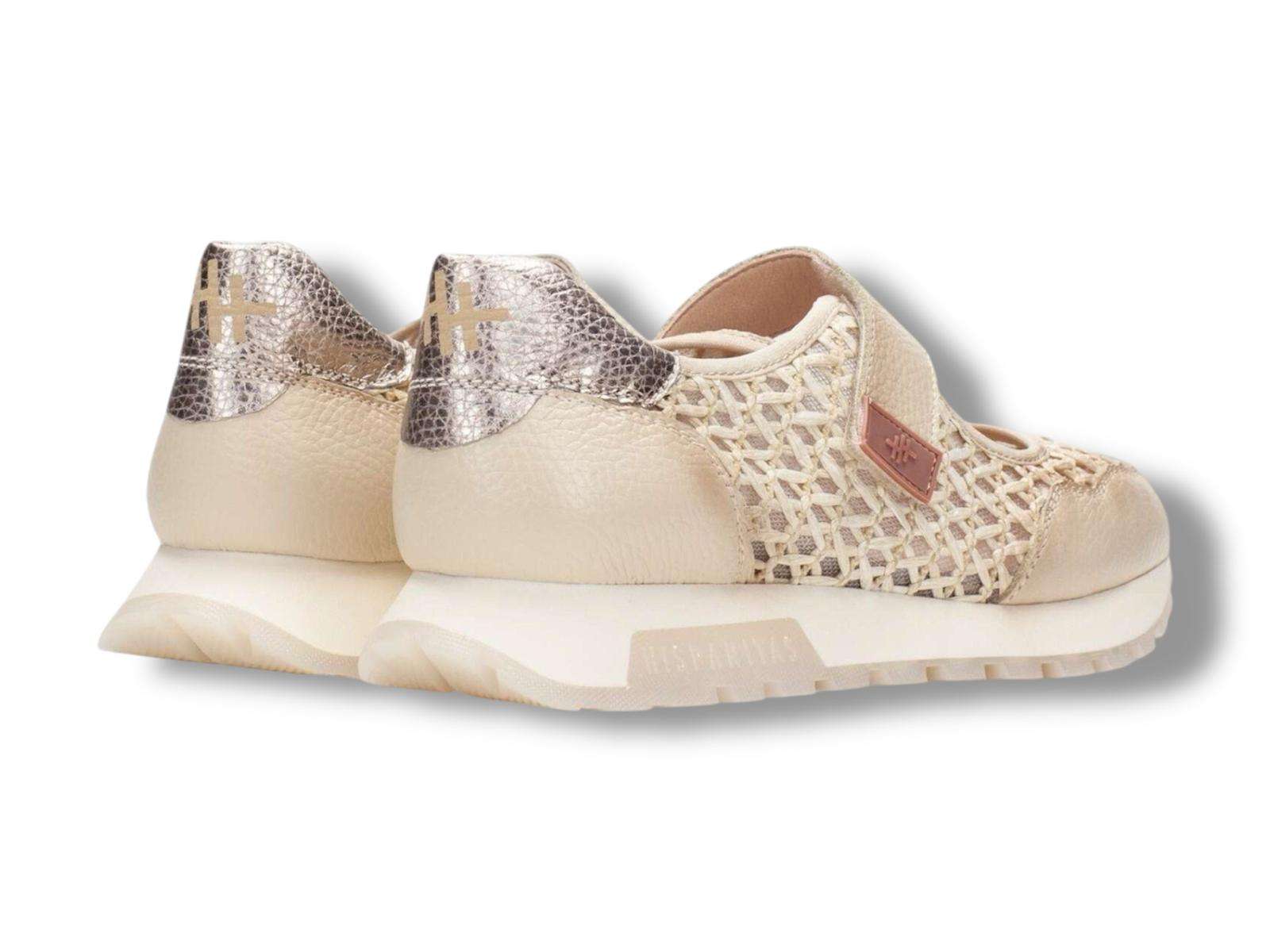 hispanitas sneakers donna con strappo mary jane rhv264622 in pelle bolero burro e rafia marrakech panna