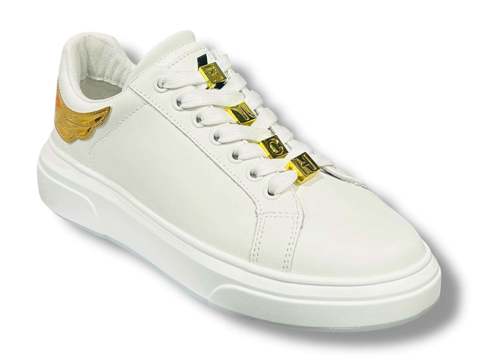 john richmond sneaker donna 30917 c action leather white con accessorio oro