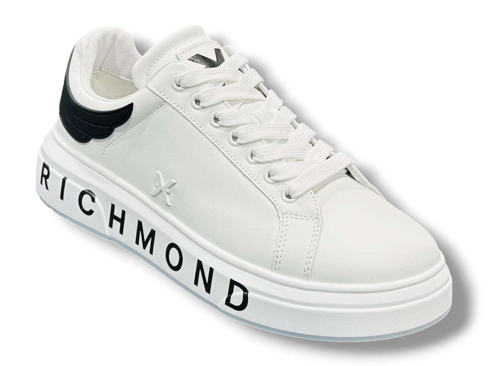 john richmond sneakers uomo 31016 b white black con suola logo