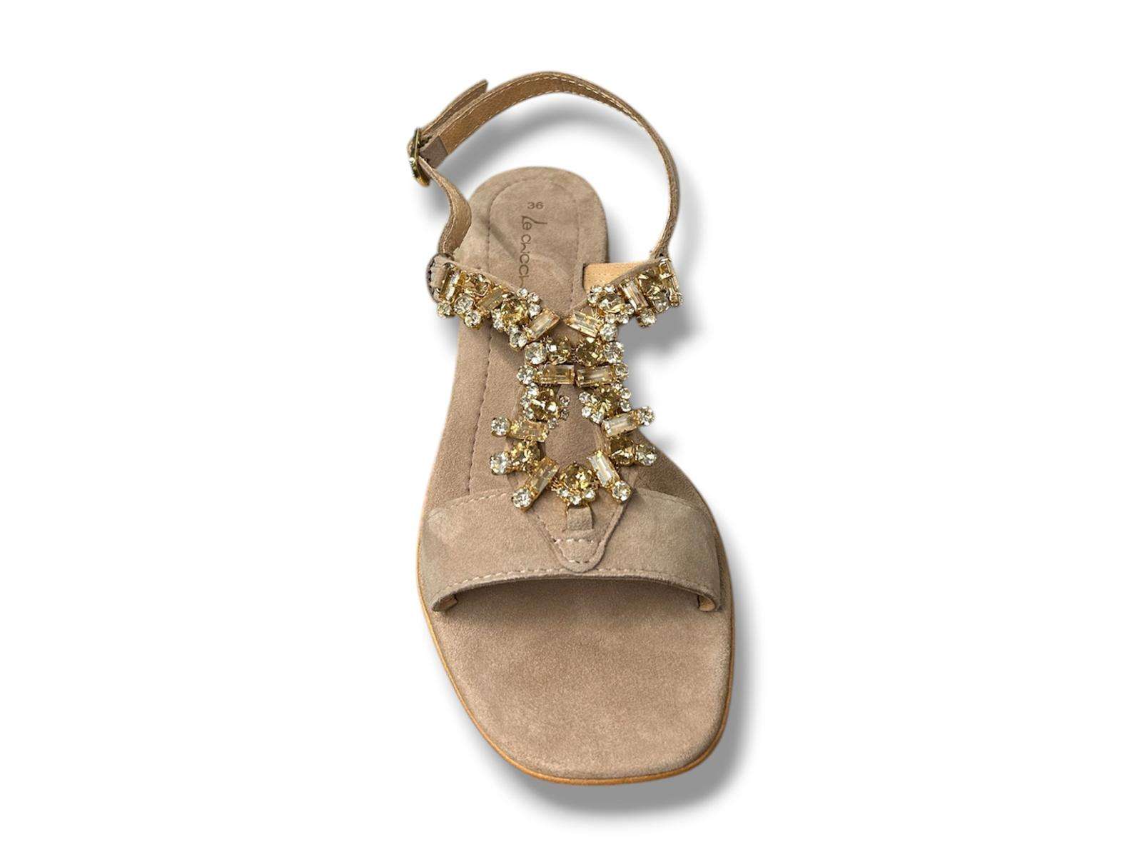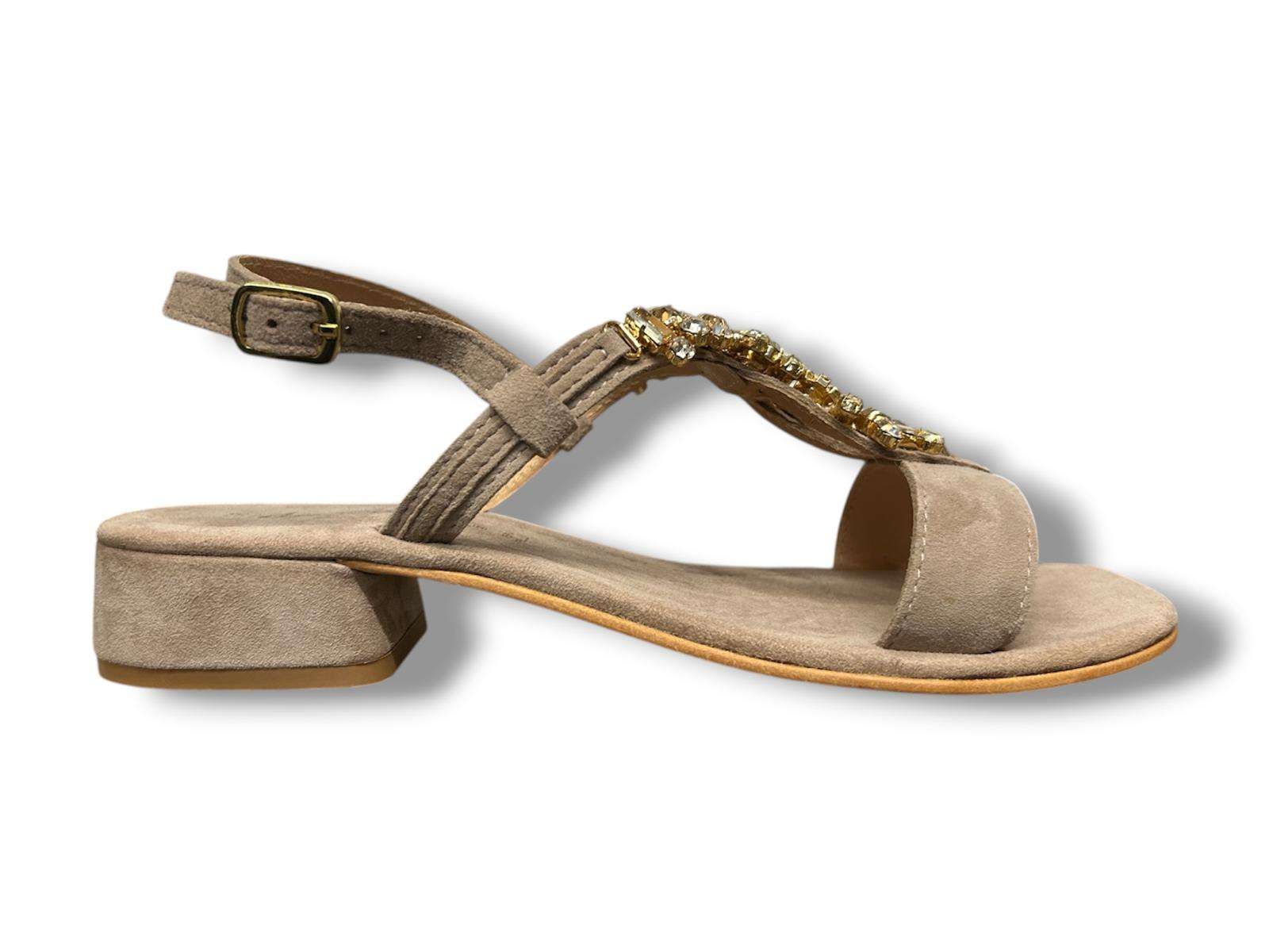 le chicche sandalo donna con gioiello in vera pelle scamosciata beige kd14221