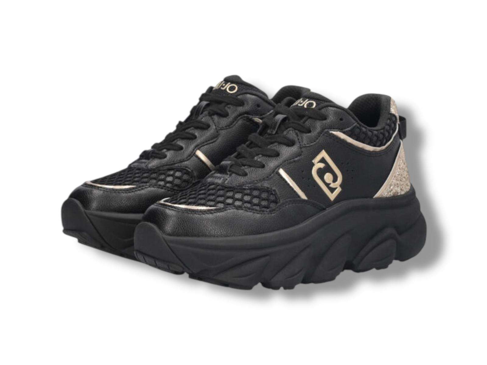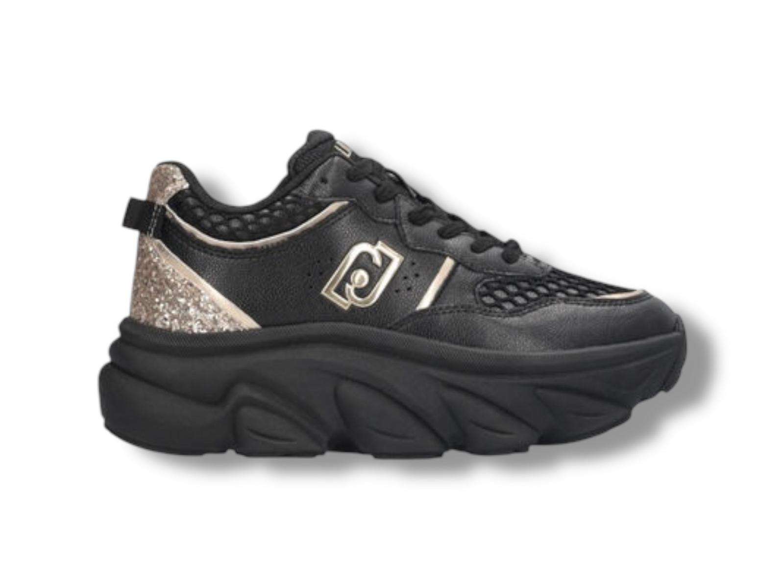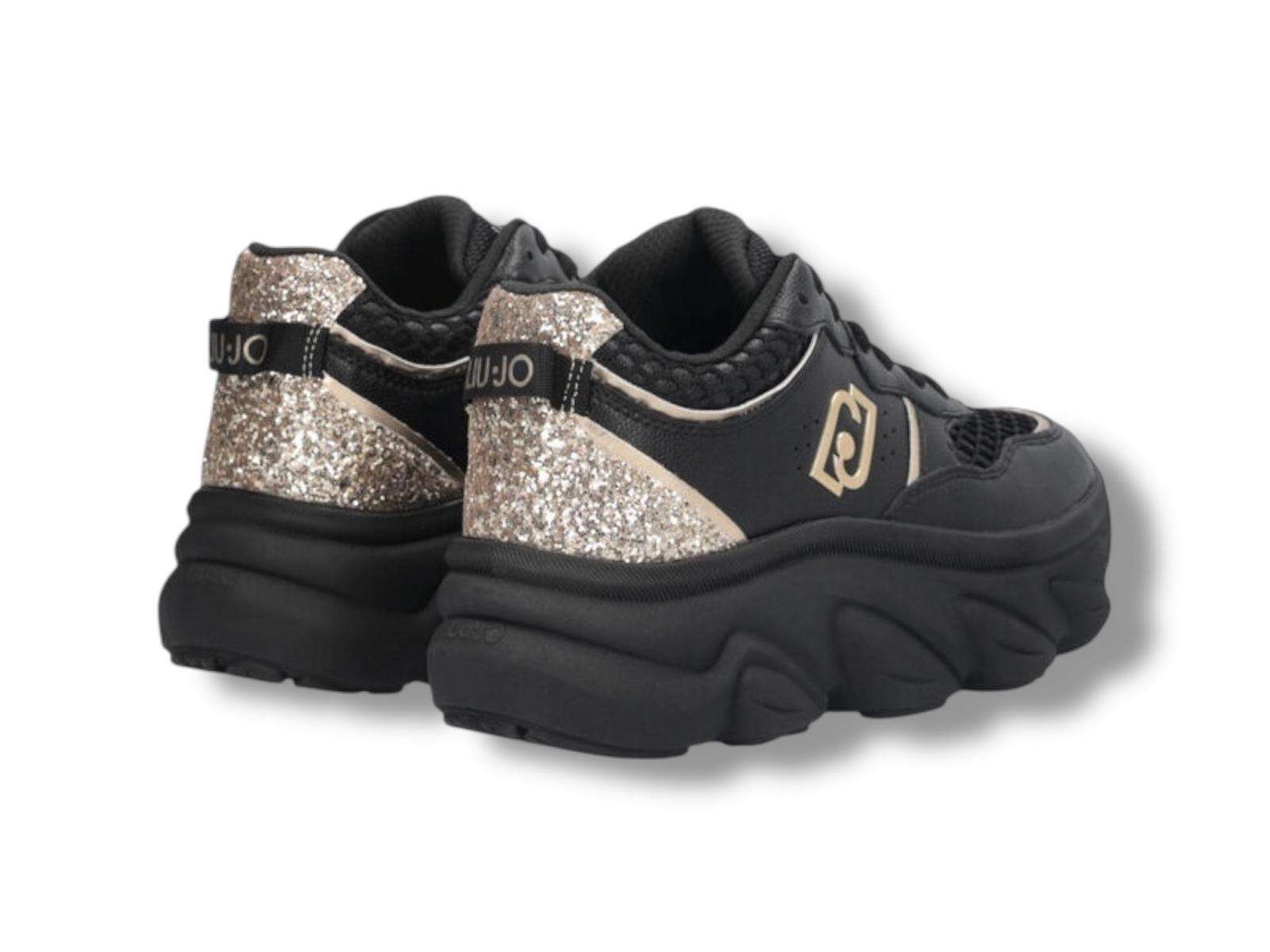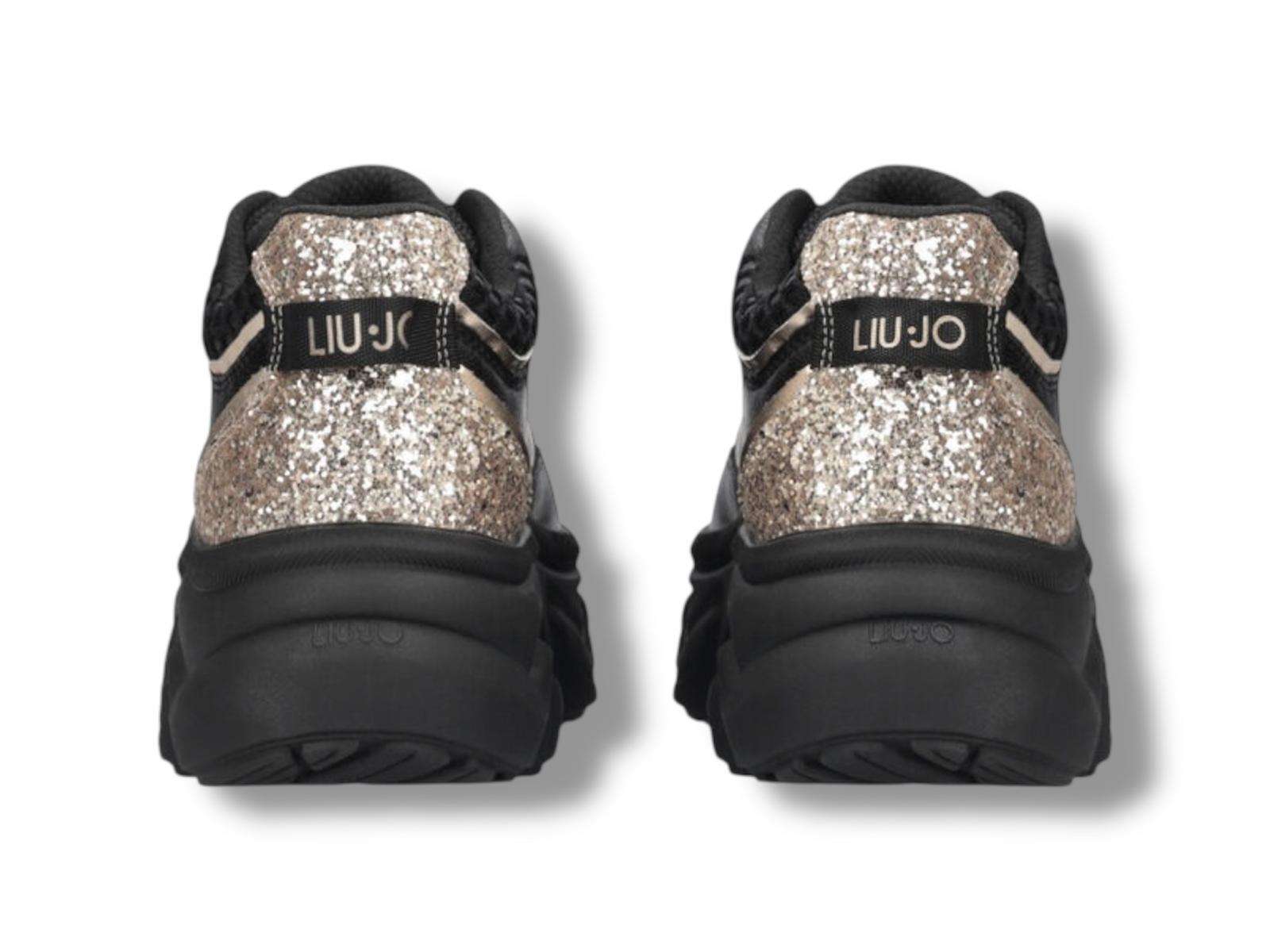 liu jo sneakers donna chuncky in pelle e glitter steffy 01 black light gold bf5061px783s1189