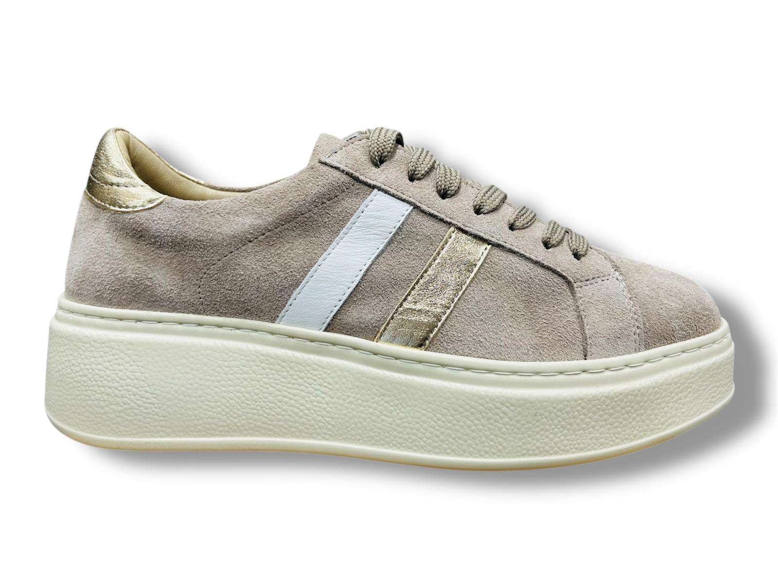 step sneakers donna suede milk con riporti metallizzati gold 260166