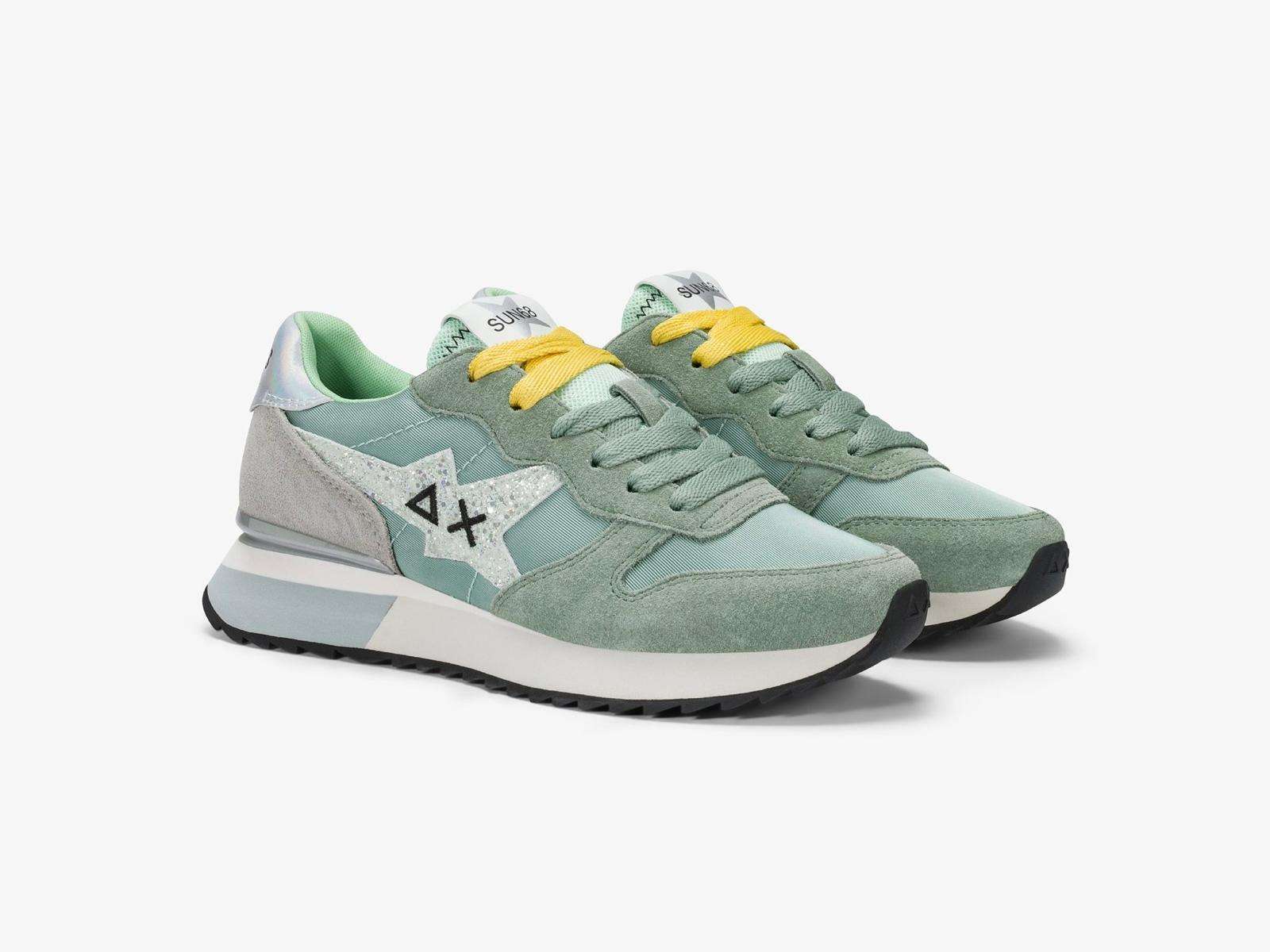 sun68 sneakers donna z36214 stargirl glitter in suede e nylon verde salvia z3621484