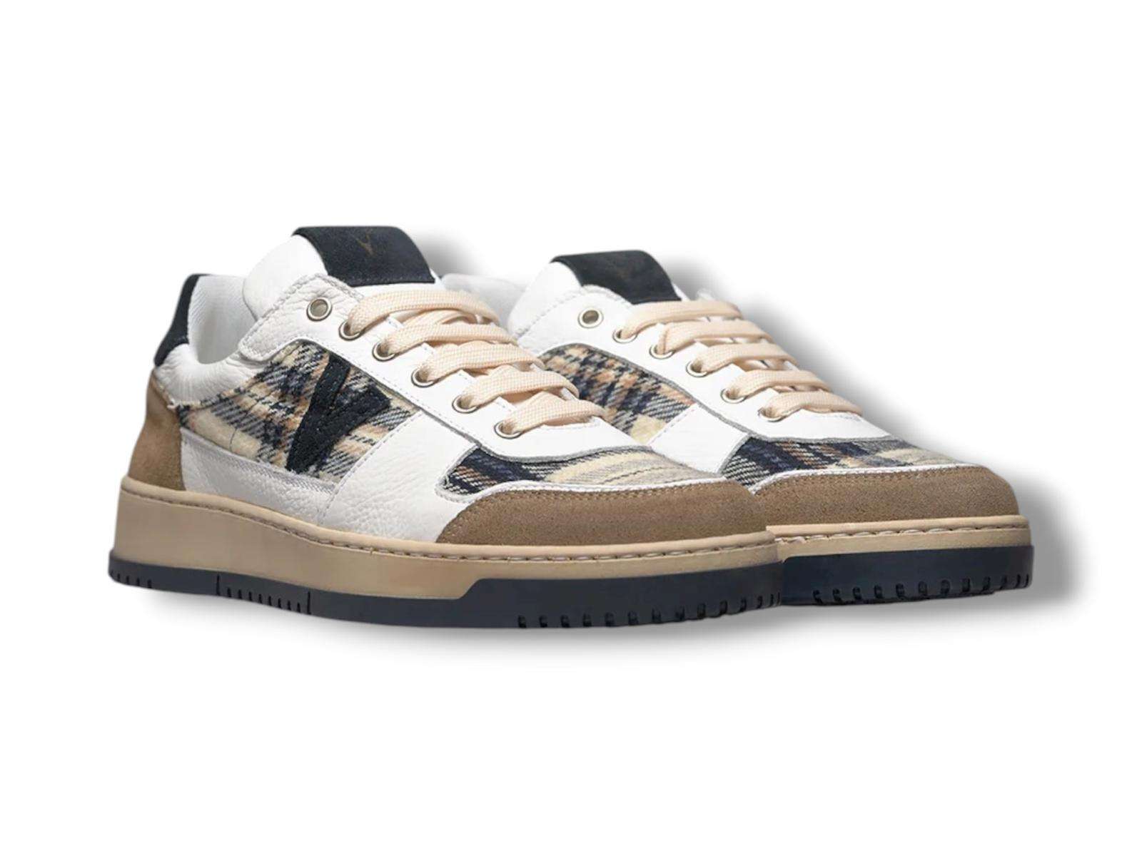 v2 brand sneaker uomo college bicolor ble e sabbia con inserti in tessuto v2 sucolbicbl1