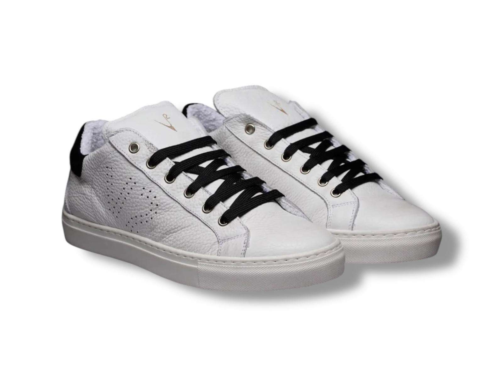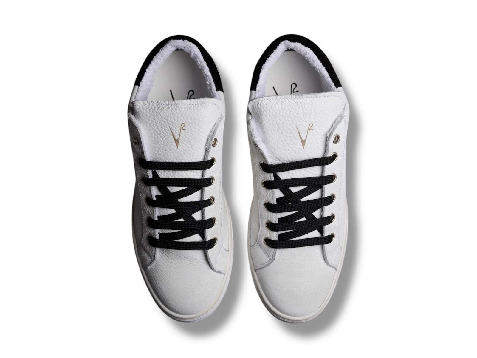 v2 brand sneaker uomo tennis a suola bassa bianca con retro e lacci nero