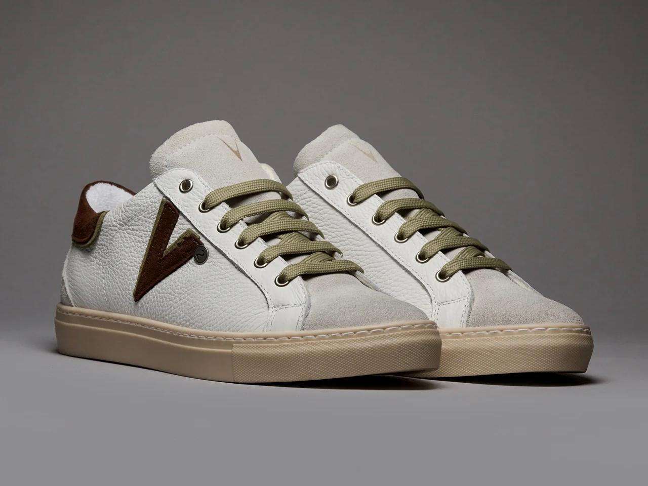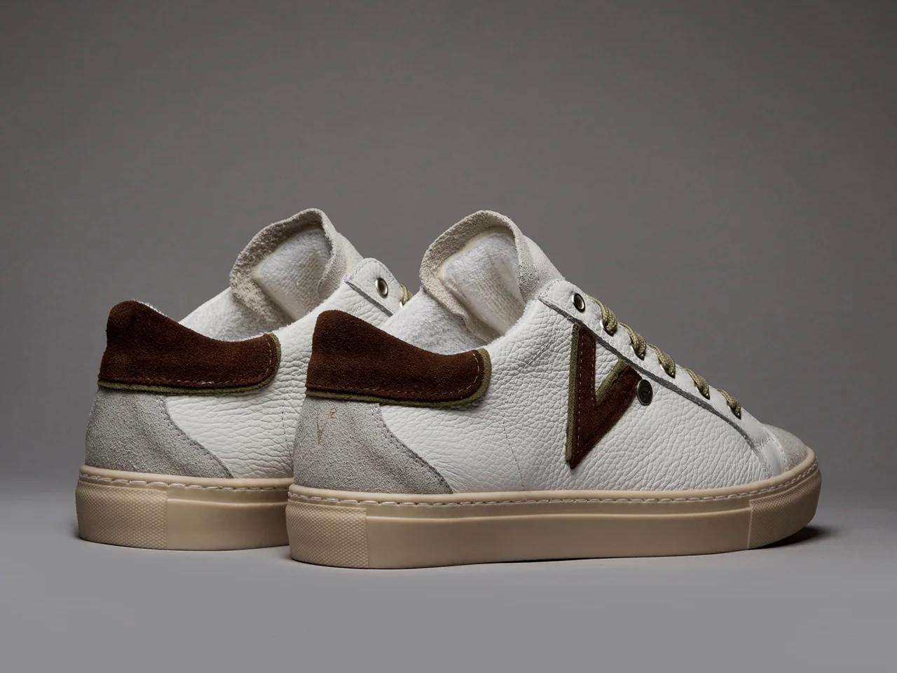 v2brand sneakers uomo olympic v a suola bassa in pelle martellata con inserto e retro bicolor moro e verde
