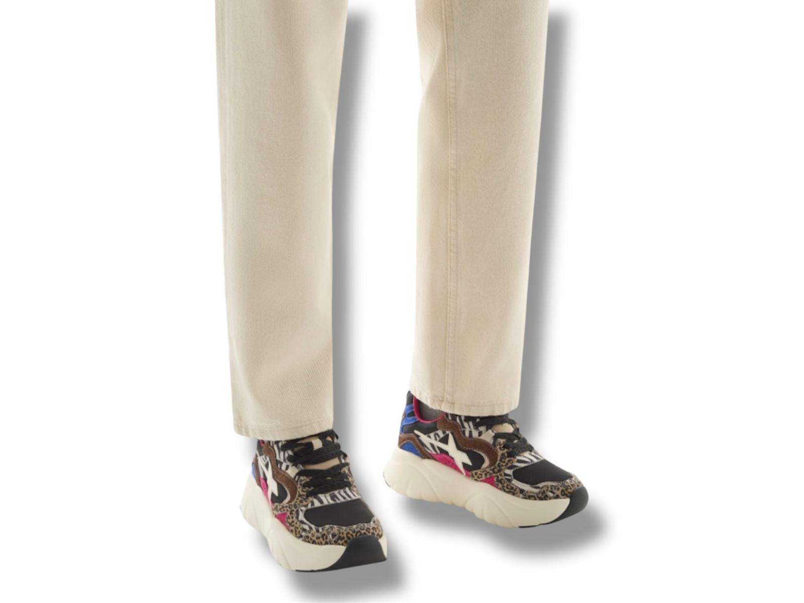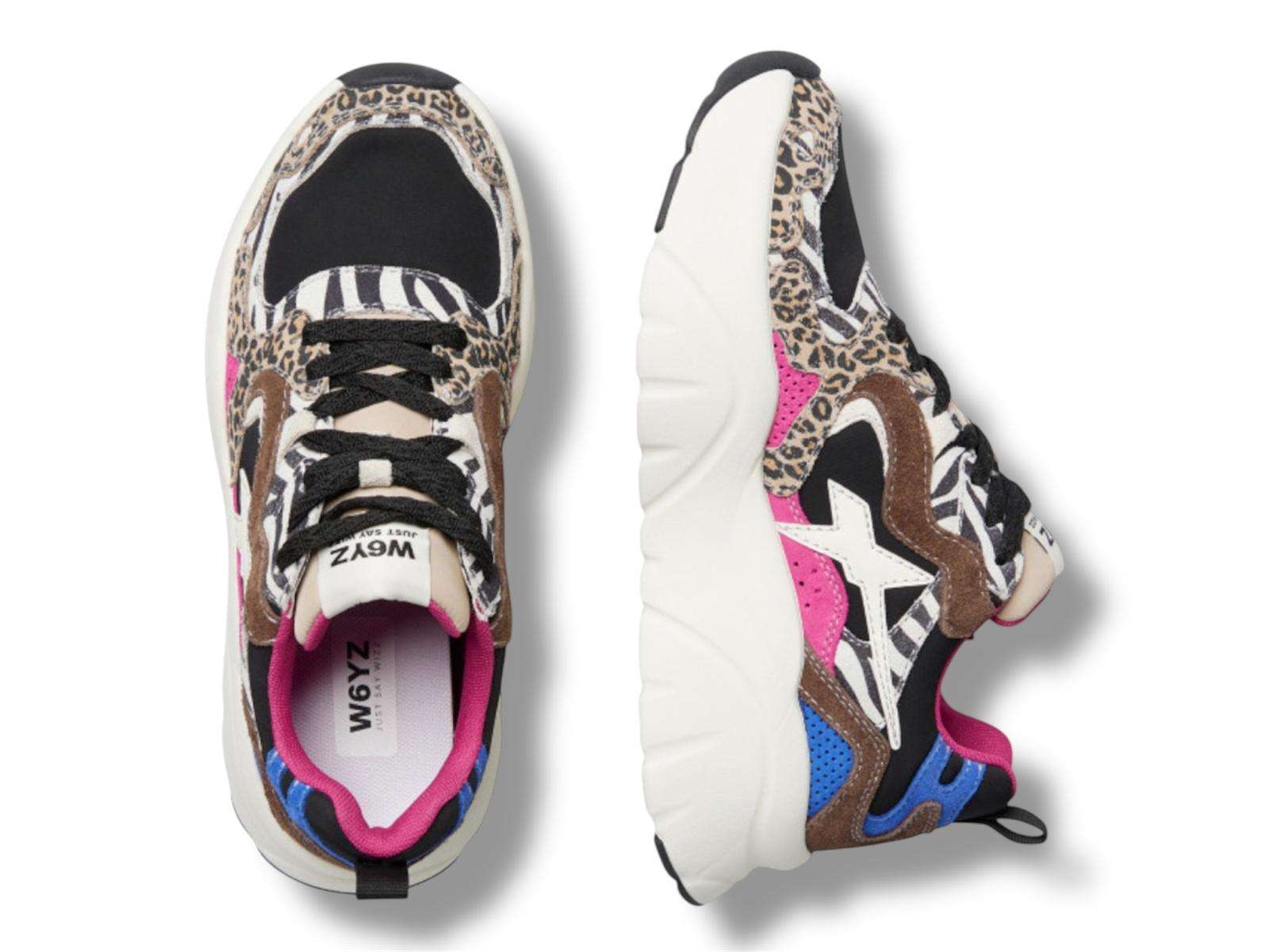 w6yz just say wizz sneakers donna mia-w in suede e tessuto tecnico black brown multicolor animalier